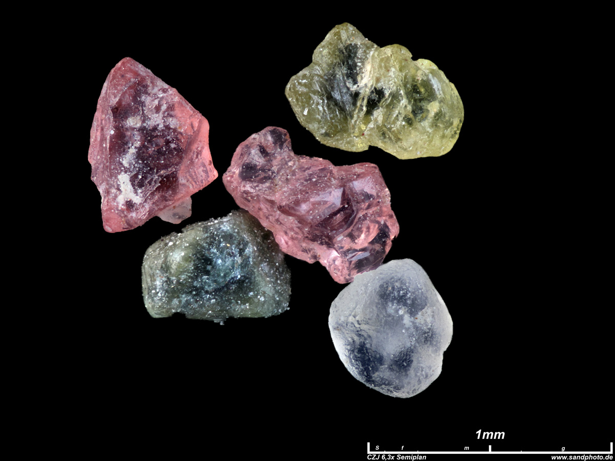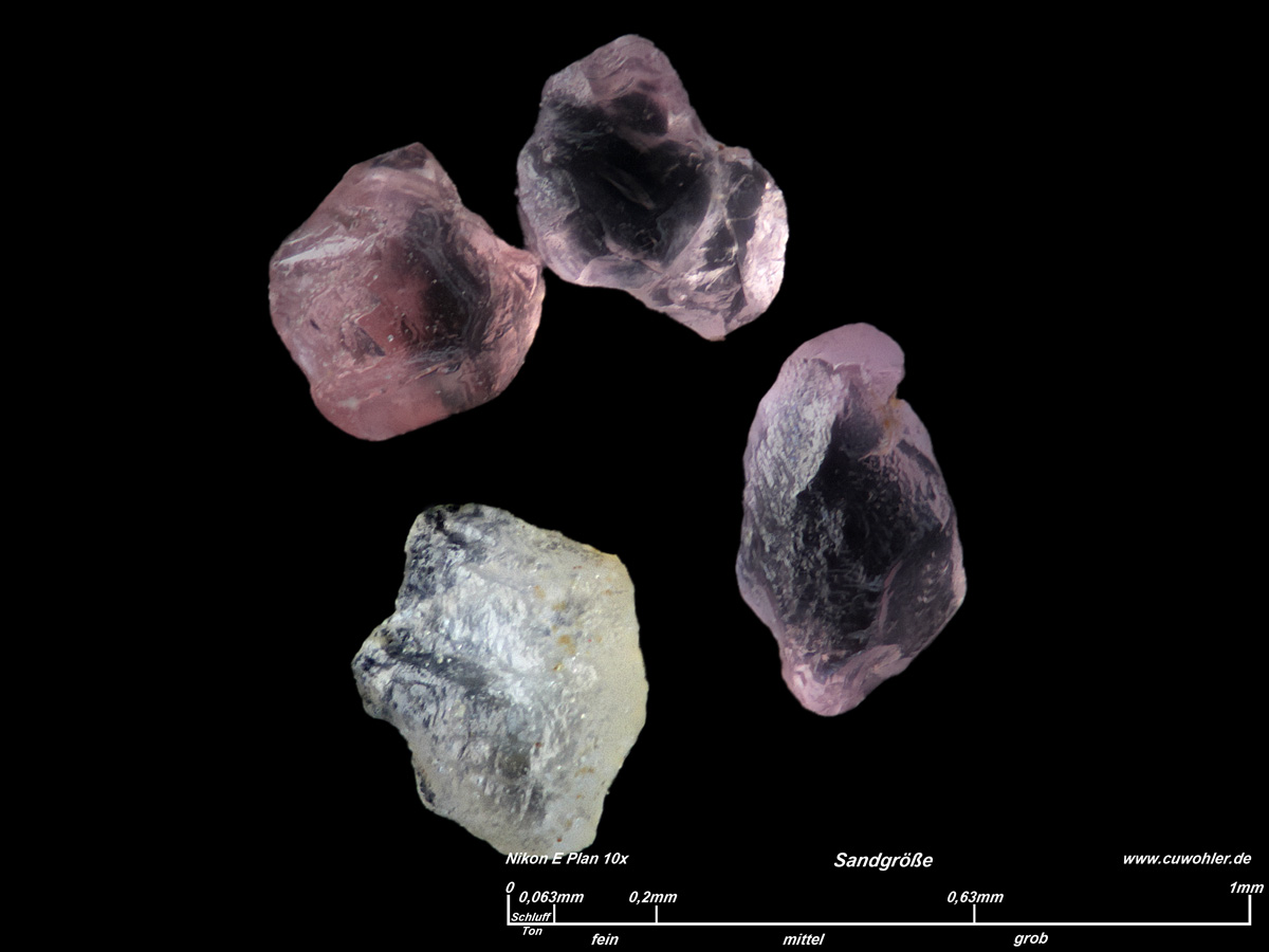 das weiße Korn deutlich mehr als die rosafarbenen (doch kein Zirkon?)