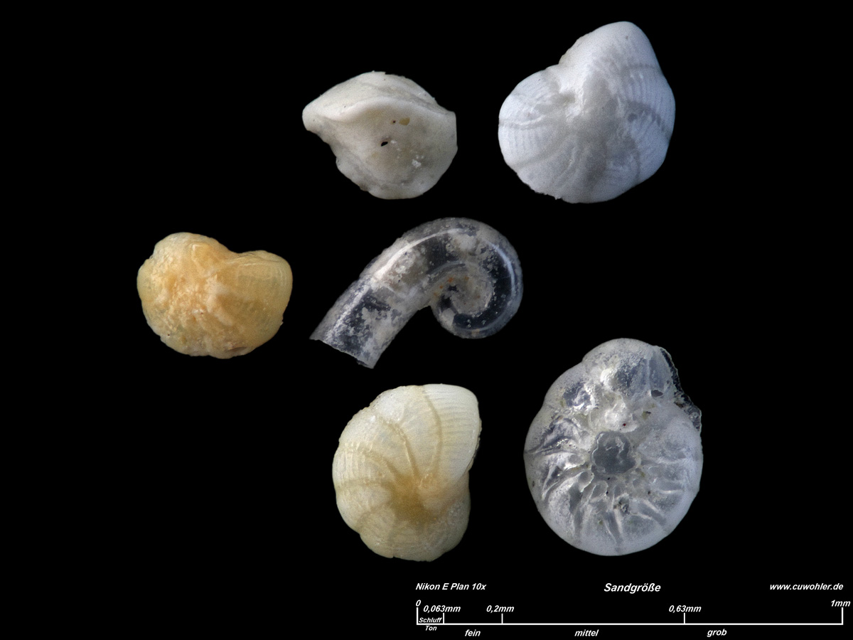 aus -1,5m Tiefe, Sand feiner Körnung mit biogenem Anteil, Foraminiferen