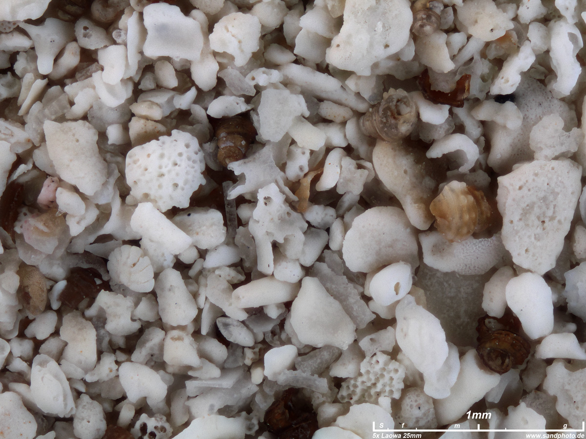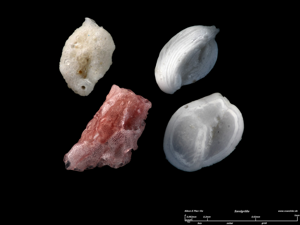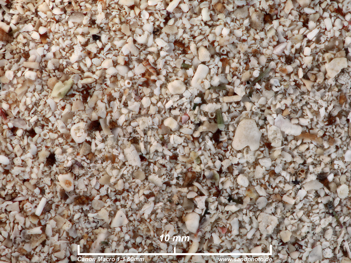aus -1,5m Tiefe, biogener Sand feiner bis mittlerer Körnung, Schnecken und Foraminiferen