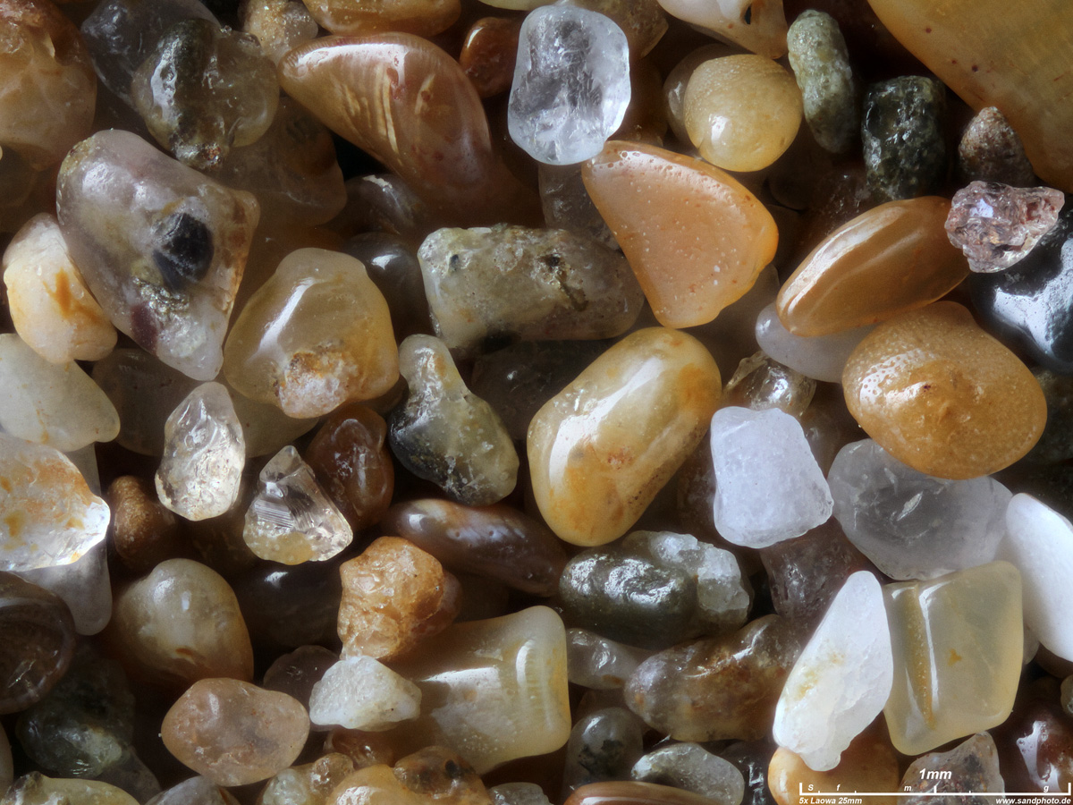 stark gerundeter mineralischer Sand mittlerer Körnung