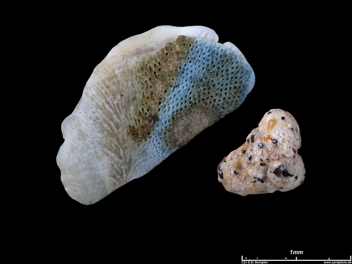 Muschelschale (?) und Foraminifere Textularia aus dieser Probe