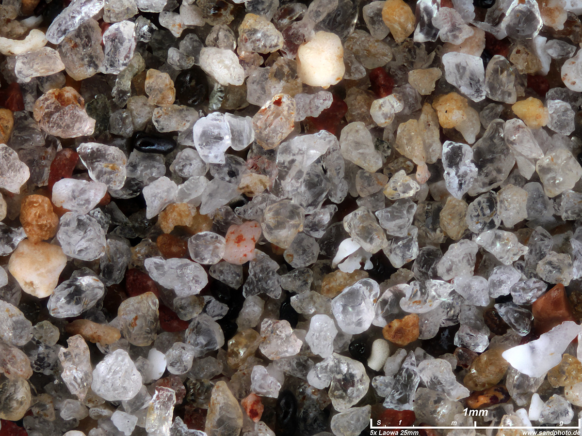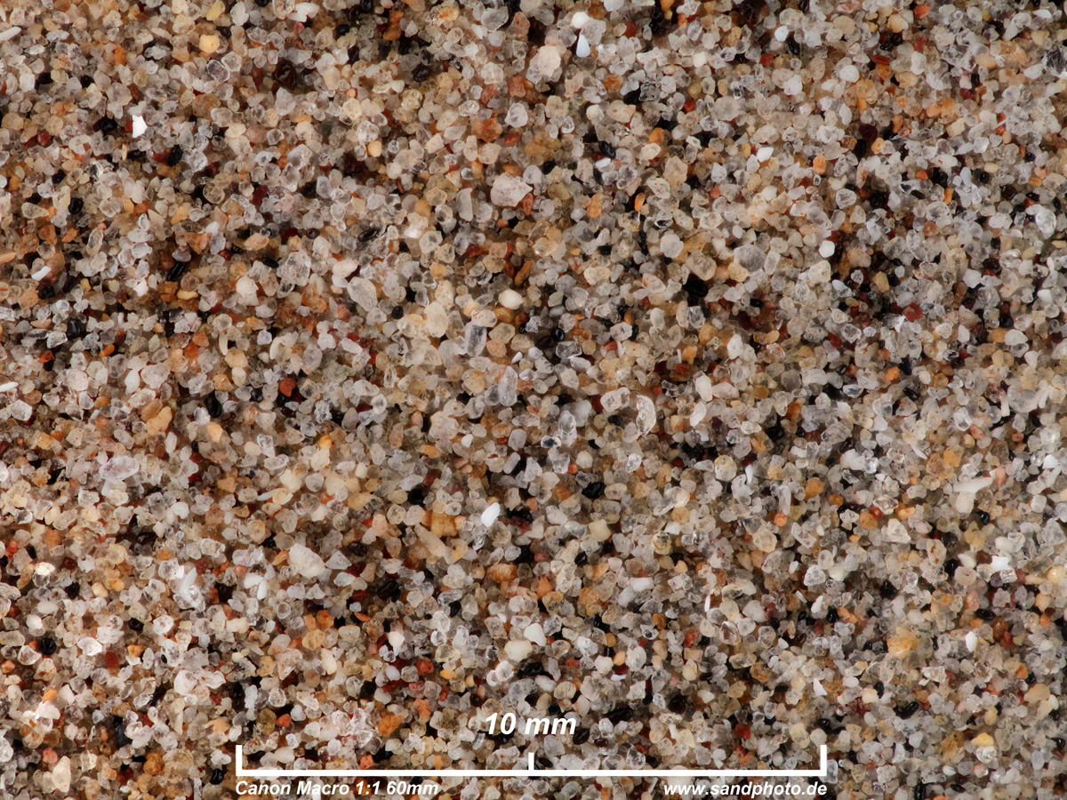 hauptsächlich Quarzsand geiner Körnung, magnetischer Anteil (hoher Rotanteil, eisenhaltig)