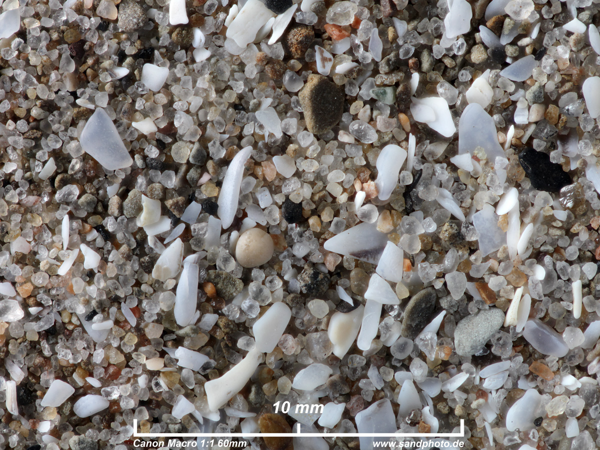 mineralischer Sand mittlerer Körnung mit biogenem Anteil und wenig Magnetit