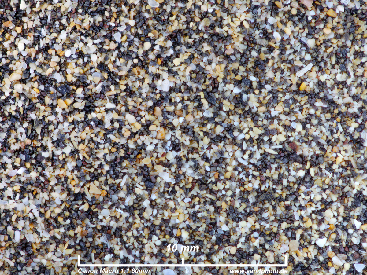 Quarzsand mittlerer Körnung mit viel Magnetit und biogenem Anteil