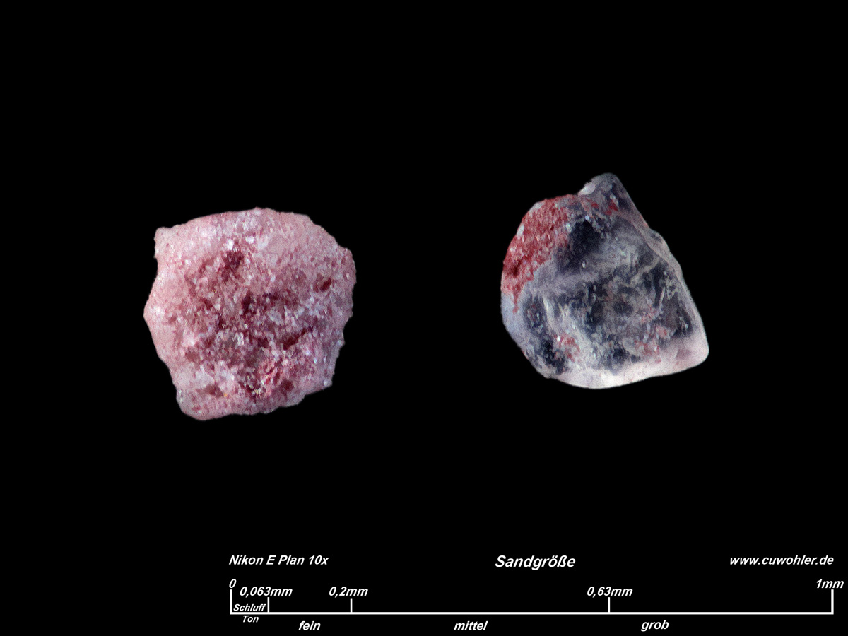 Quarzkörner mit anhaftendem roten Lehm aus dieser Probe