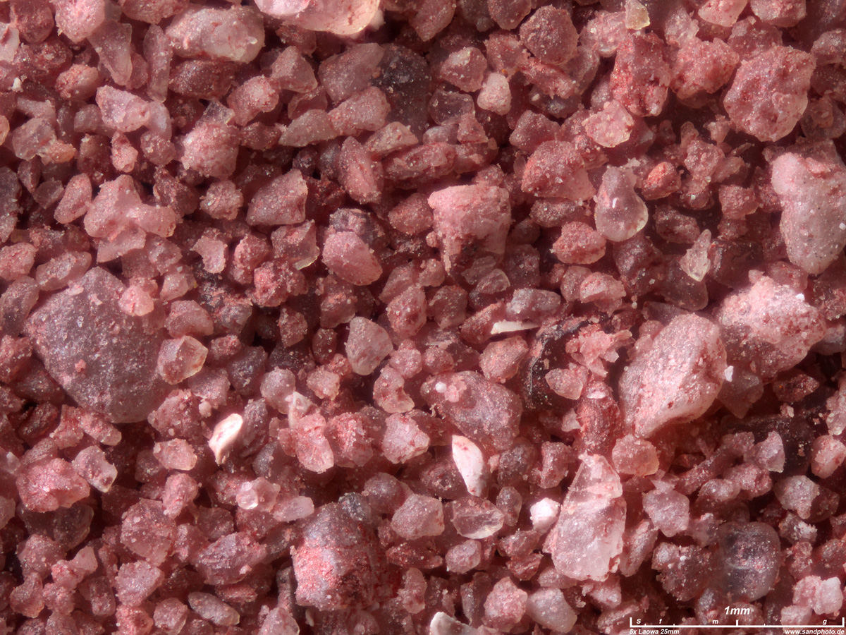 rosafarbener Quarzsand feiner bis grober Körnung mit rotem Schluff
