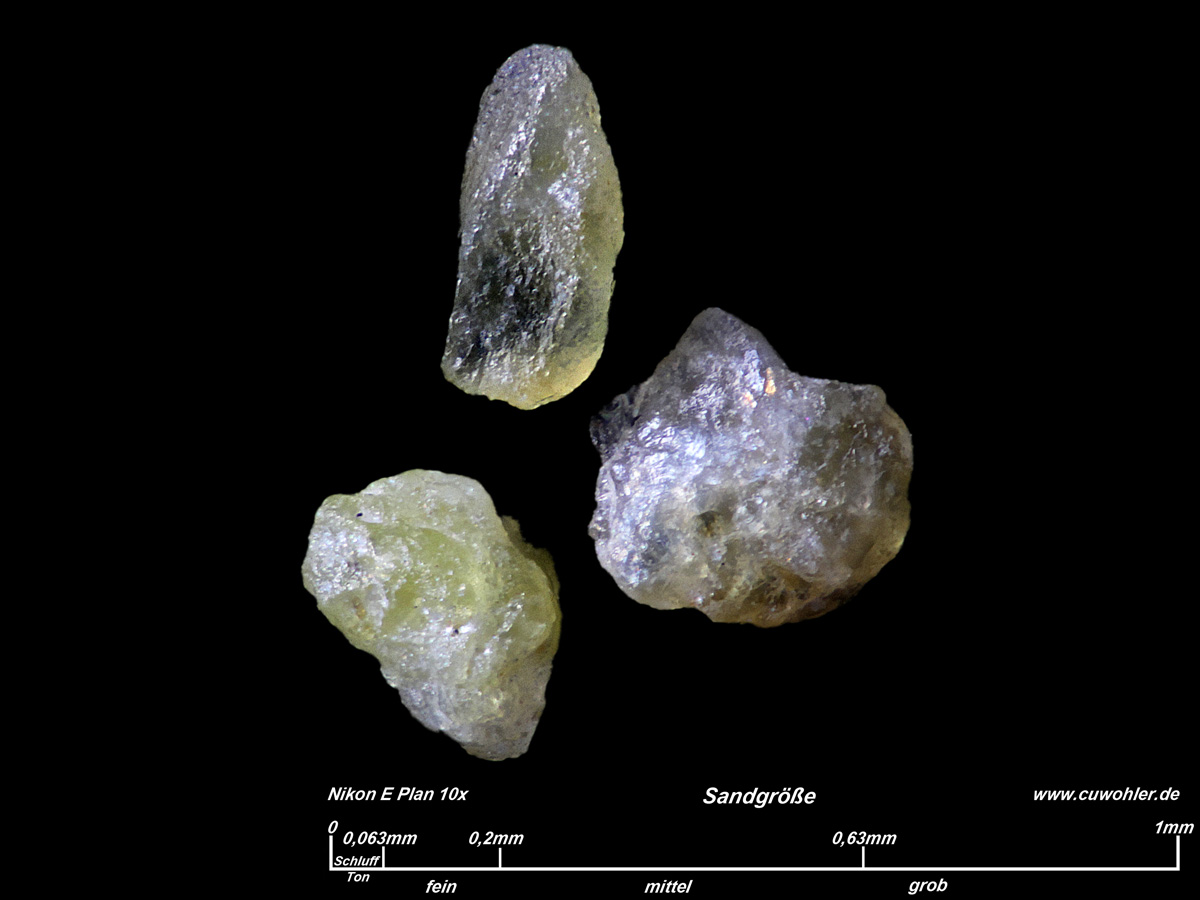 grüne Sandkörner (Olivin?) aus dieser Probe