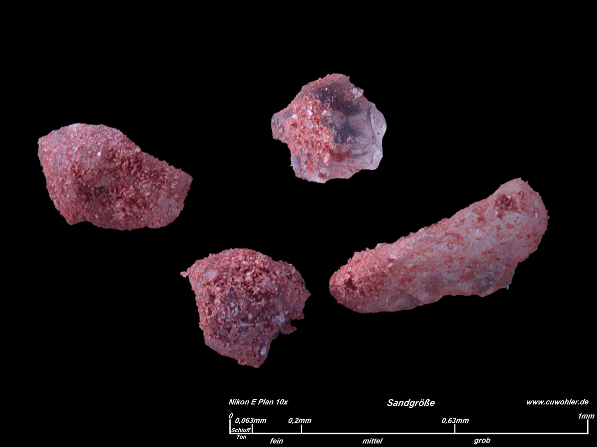 kleine Quarzkörner mit rotem Schluff aus dieser Probe