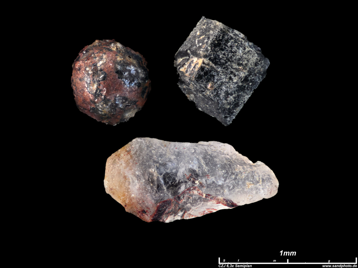 zwei magnetische Körner sowie Quarz aus dieser Probe