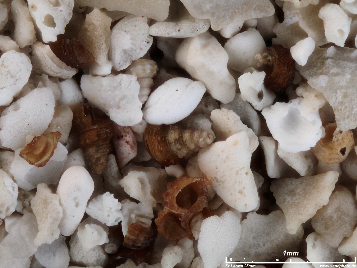 biogener Sand feiner bis mittlerer Körnung, Schnecken und Foraminiferen