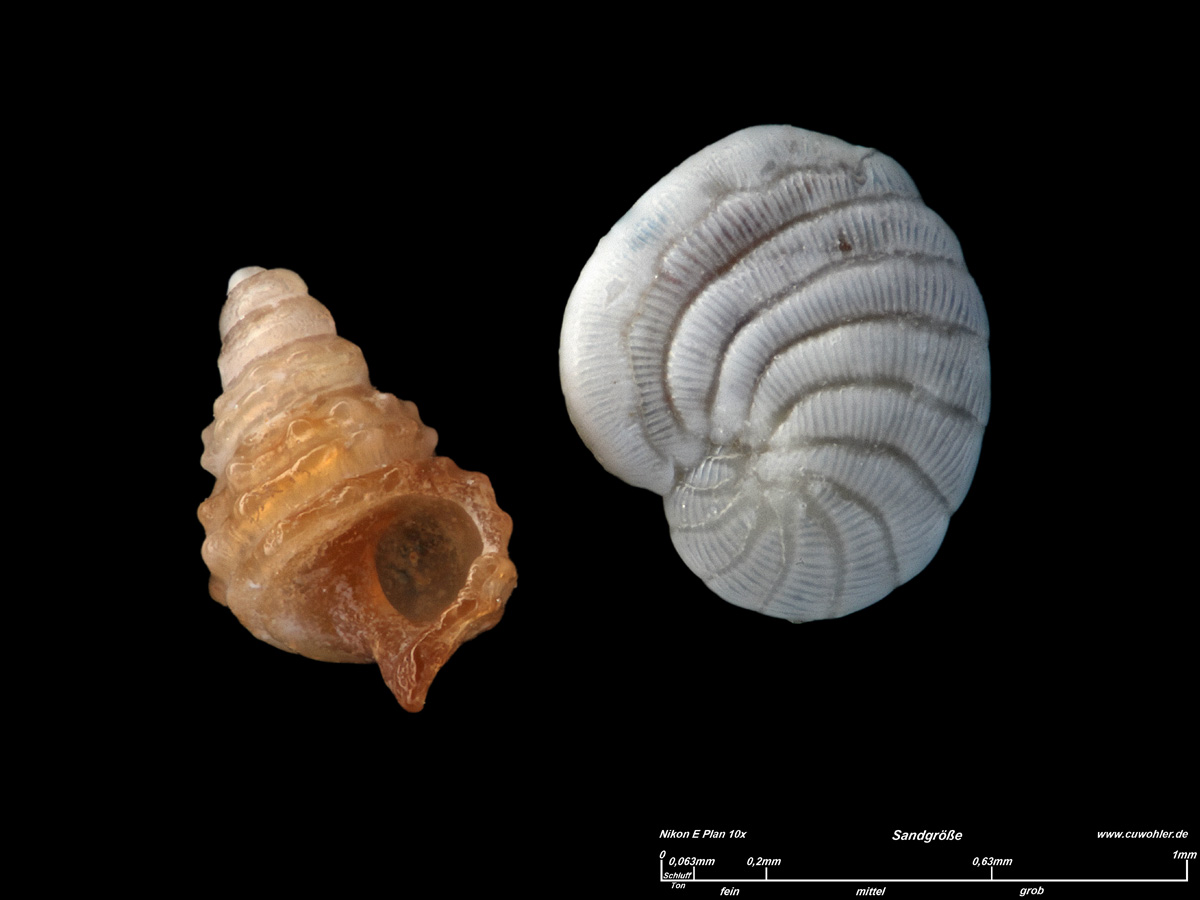 Schnecke und Foraminifere aus dieser Probe