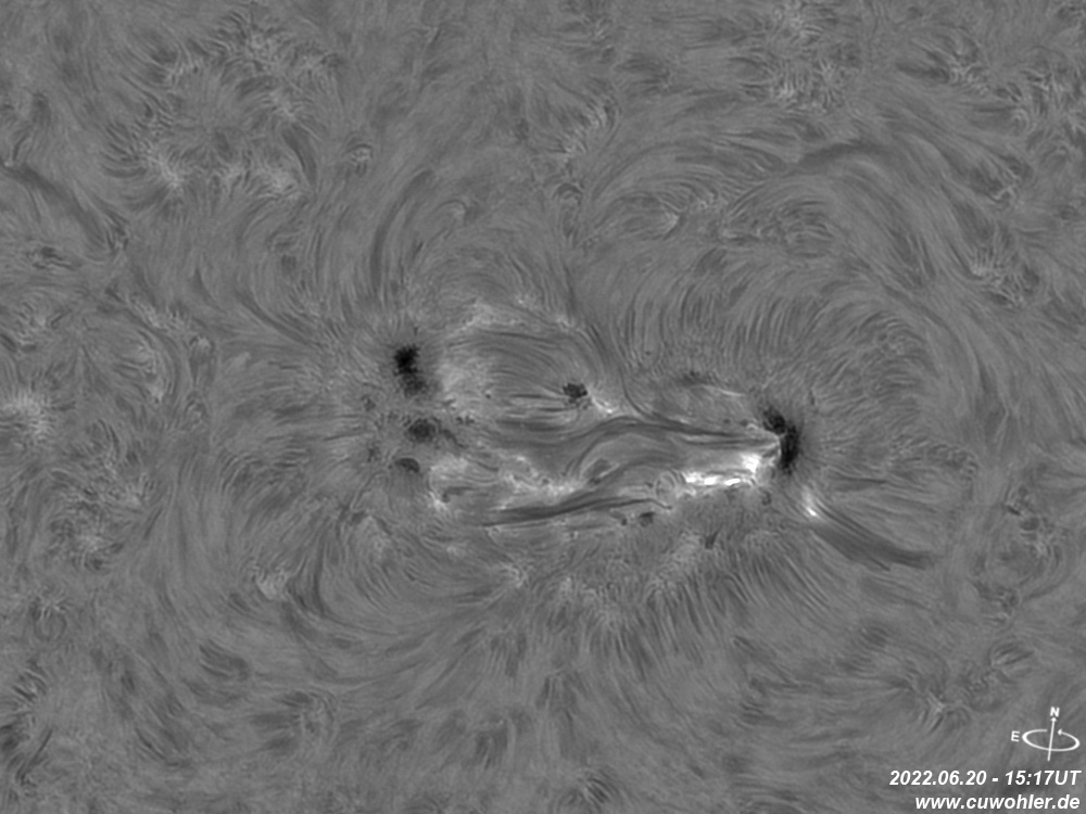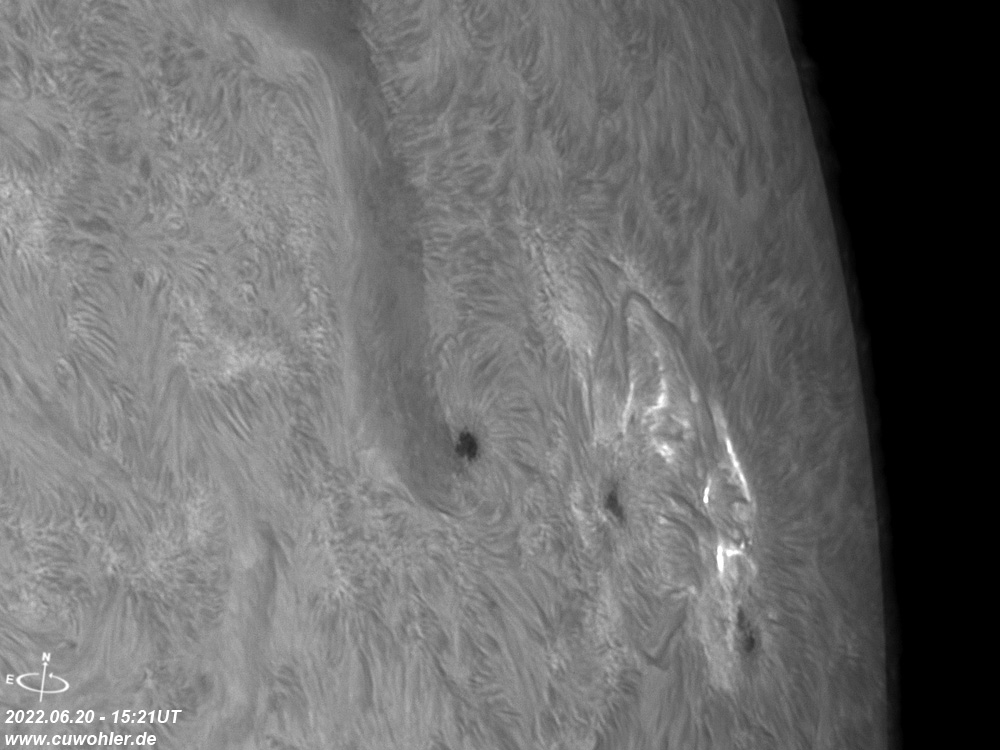 Aufnahmen mit B+W 630 Frontfilter rot, SW ED 120/900, Daystar Quark Chromosphere und ZWO ASI 174MM, Bilder ca. 17% verkleinert, f