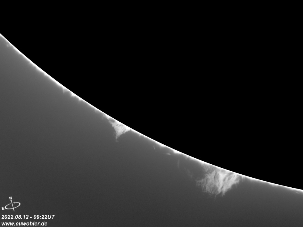 Aufnahmen mit B+W 630 Frontfilter rot, SD APO 102/714, UV / IR-Cut, Daystar Quark Chromosphere und ZWO ASI 174MM.