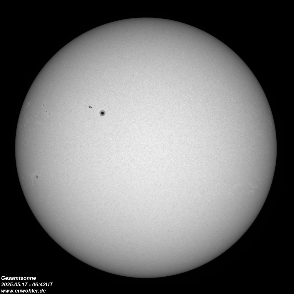 Aufgenommen mit TS ED 80/560, Herschelprisma, Solar Continuum Filter, (Barlow 2,25x) und ASI 290 MM