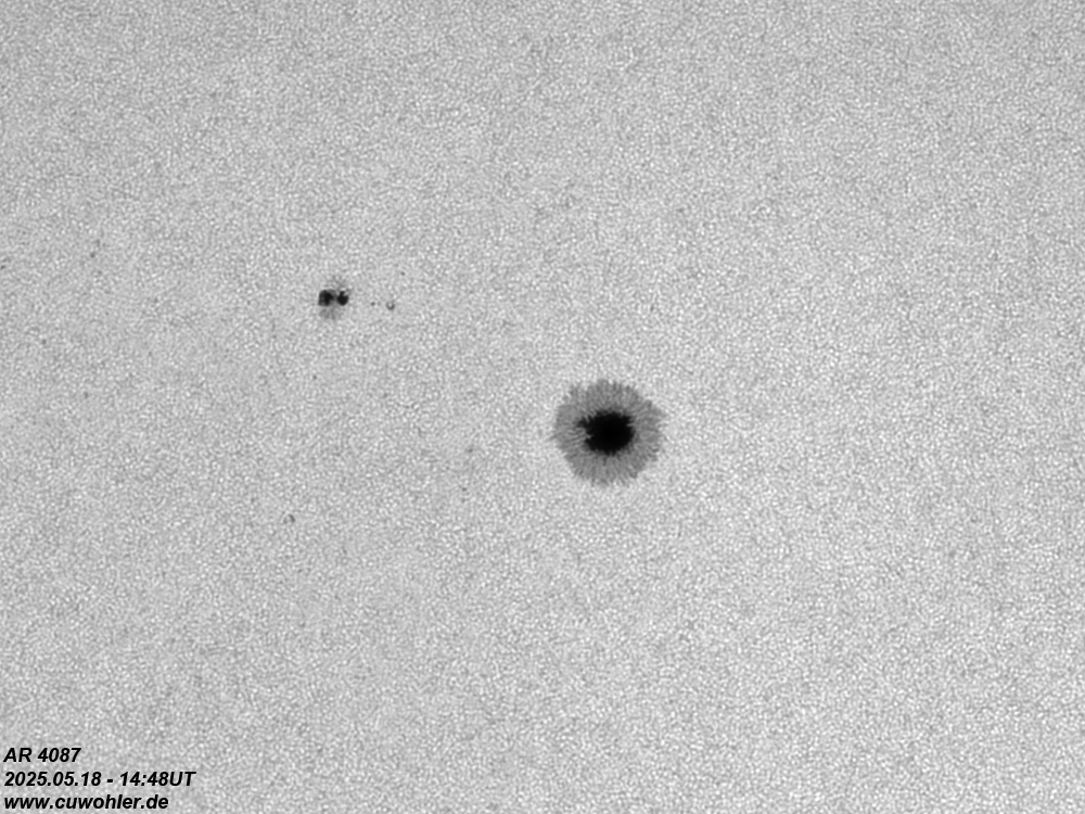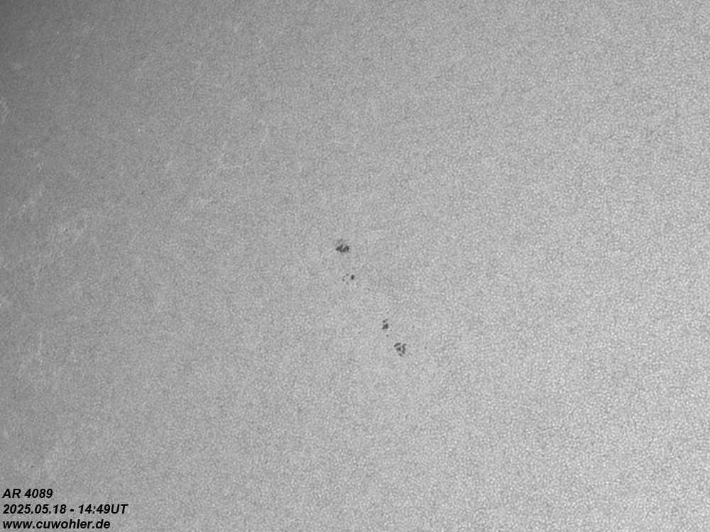 Aufgenommen mit TS ED 80/560, Herschelprisma, Solar Continuum Filter, (Barlow 2,25x) und ASI 290 MM