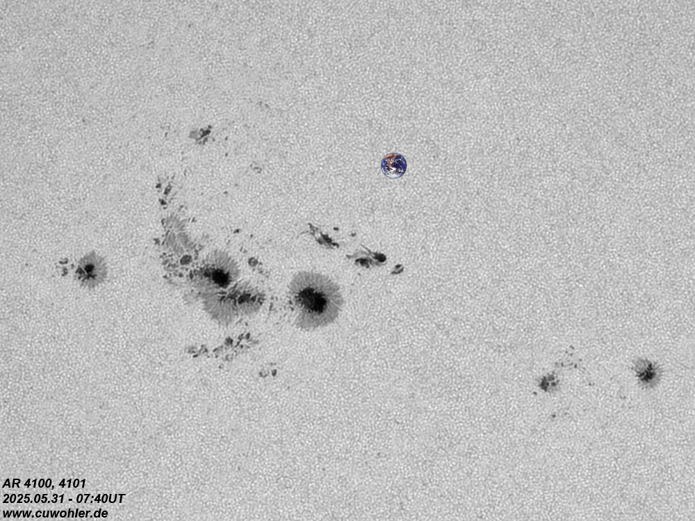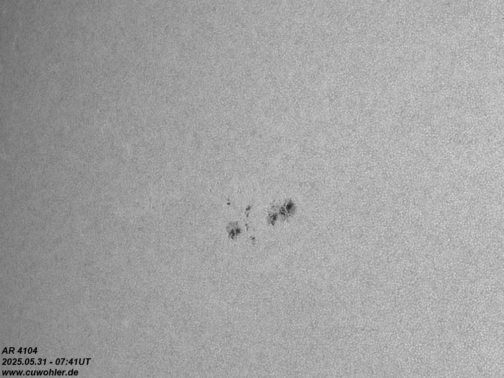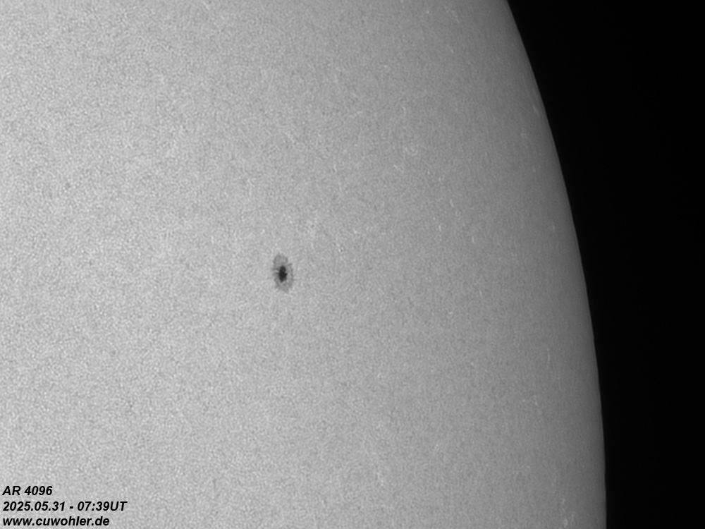 Aufgenommen mit TS ED 80/560, Herschelprisma, Solar Continuum Filter, (Barlow 2,25x) und ASI 290 MM