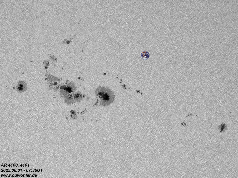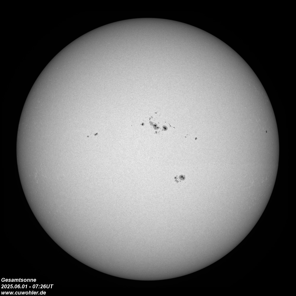 Aufgenommen mit TS ED 80/560, Herschelprisma, Solar Continuum Filter, (Barlow 2,25x) und ASI 290 MM