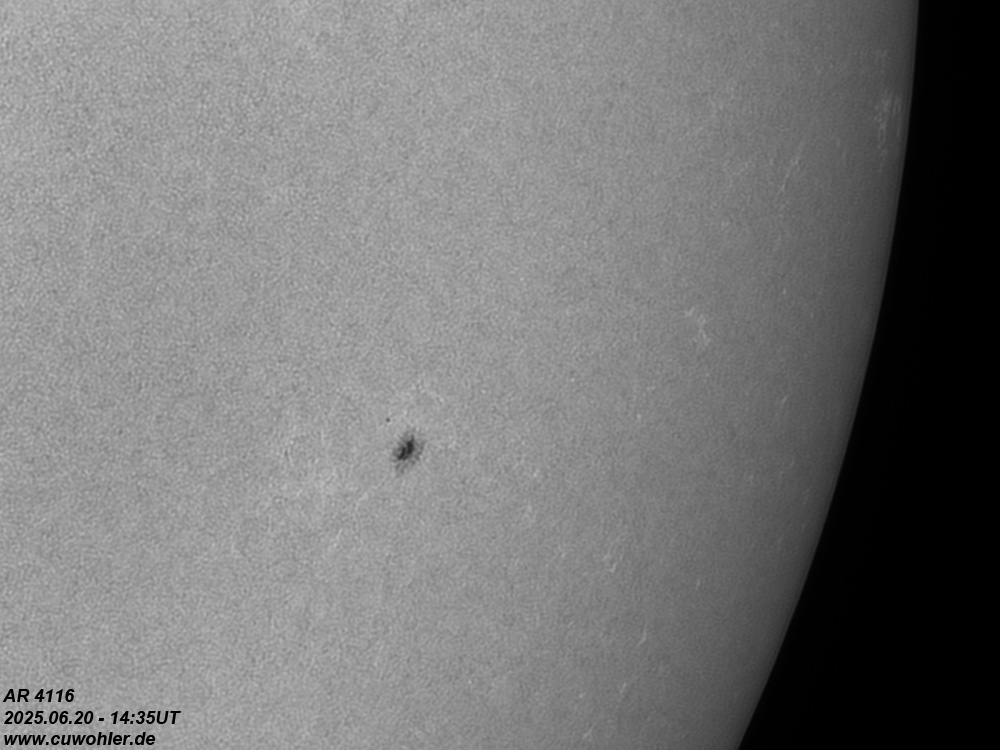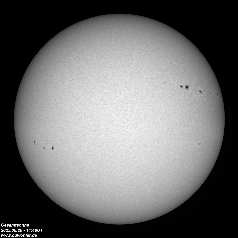 Aufgenommen mit TS ED 80/560, Herschelprisma, Solar Continuum Filter, (Barlow 2,25x) und ASI 290 MM