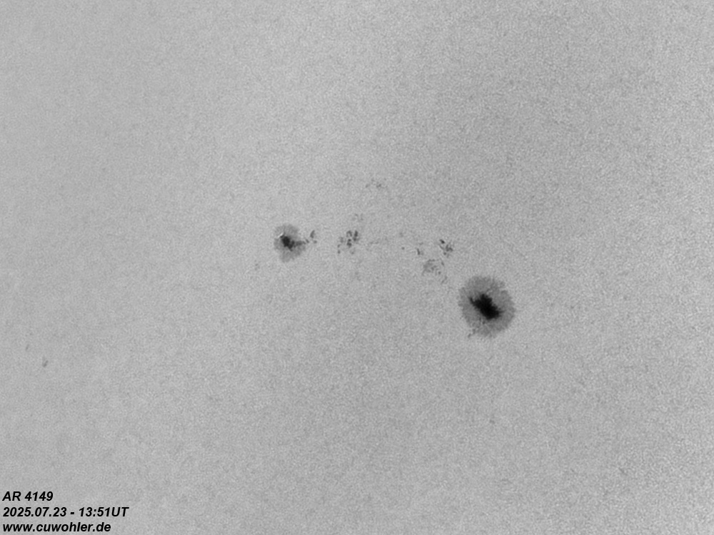 Aufgenommen mit TS ED 80/560, Herschelprisma, Solar Continuum Filter, (Barlow 2,25x) und ASI 290 MM
