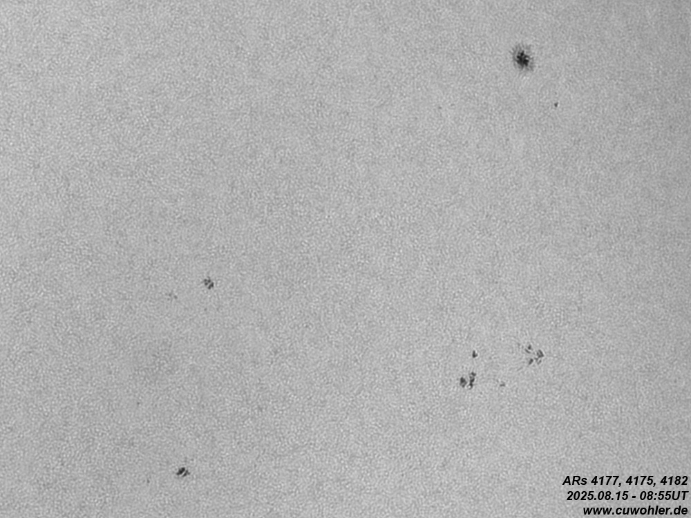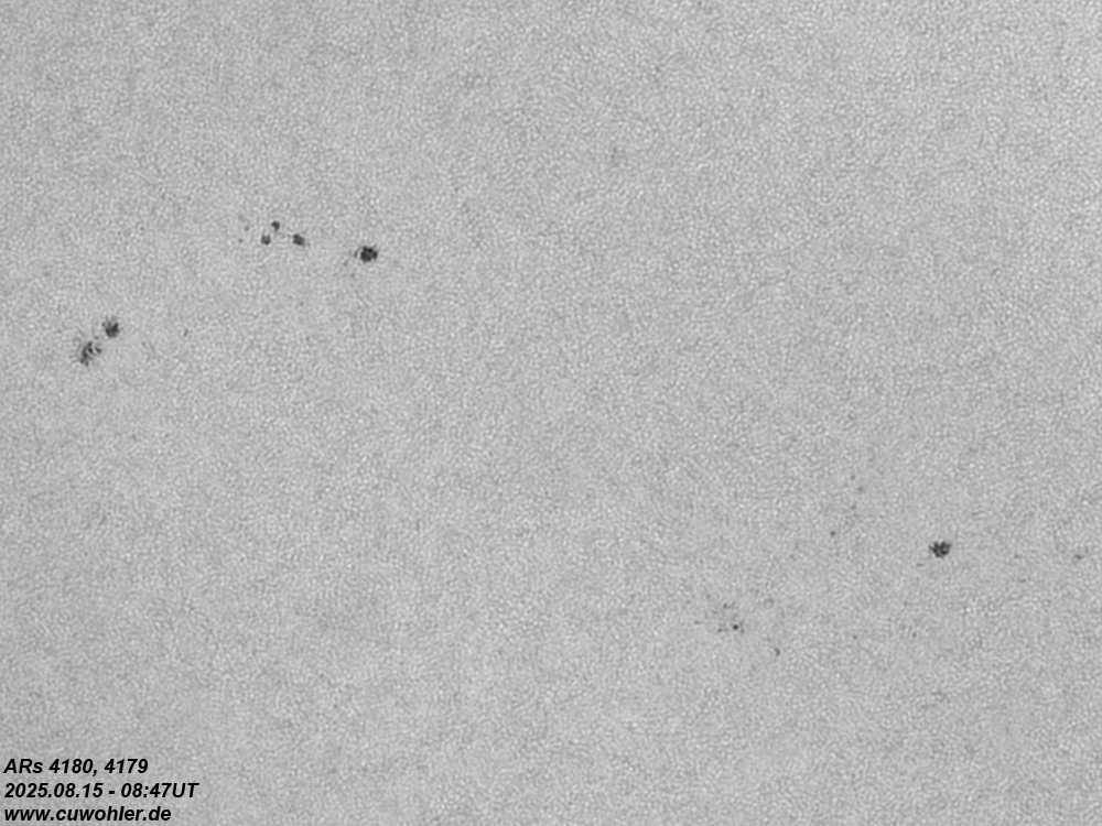 Aufgenommen mit TS ED 80/560, Herschelprisma, Solar Continuum Filter, (Barlow 2,25x) und ASI 290 MM