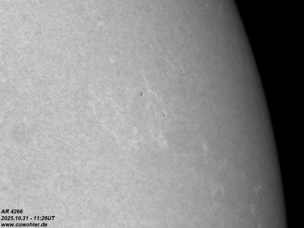 Aufgenommen mit TS SD 102/714, Herschelprisma, Solar Continuum Filter, (Barlow 2,25x) und ASI 290 MM