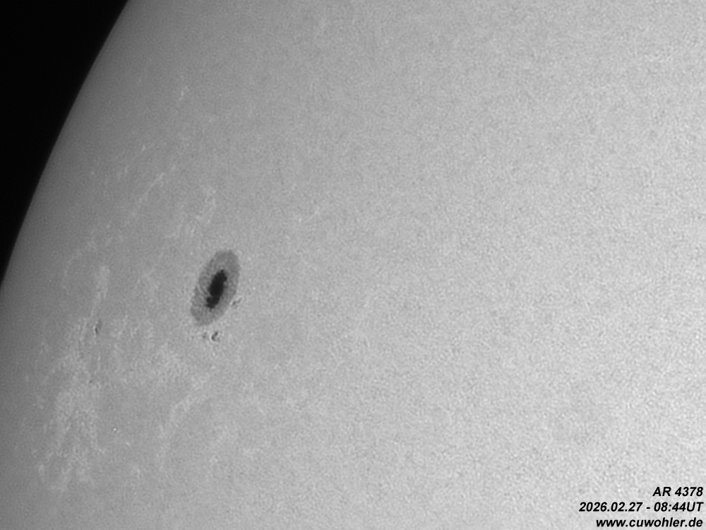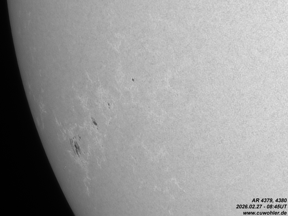 Aufgenommen mit TS SD 80/560, Baader Solar Continuum Filter, Herschelkeil, (Baader Q-Turret Barlow 2,25x), Baader UV-, IR Cut Filter und ASI 290 MM.