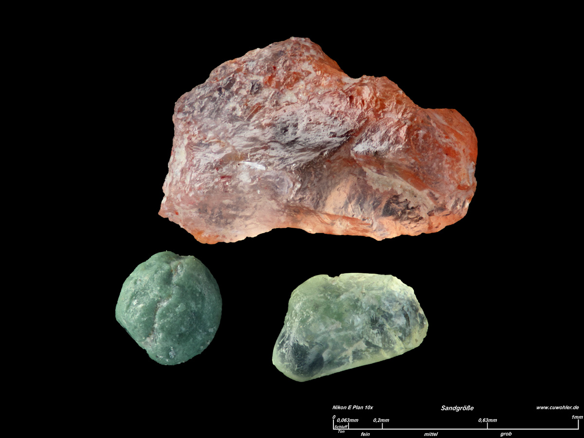 Quarz mit Eisenoxid, Glaukonit und unbekanntes Mineral aus dieser Probe