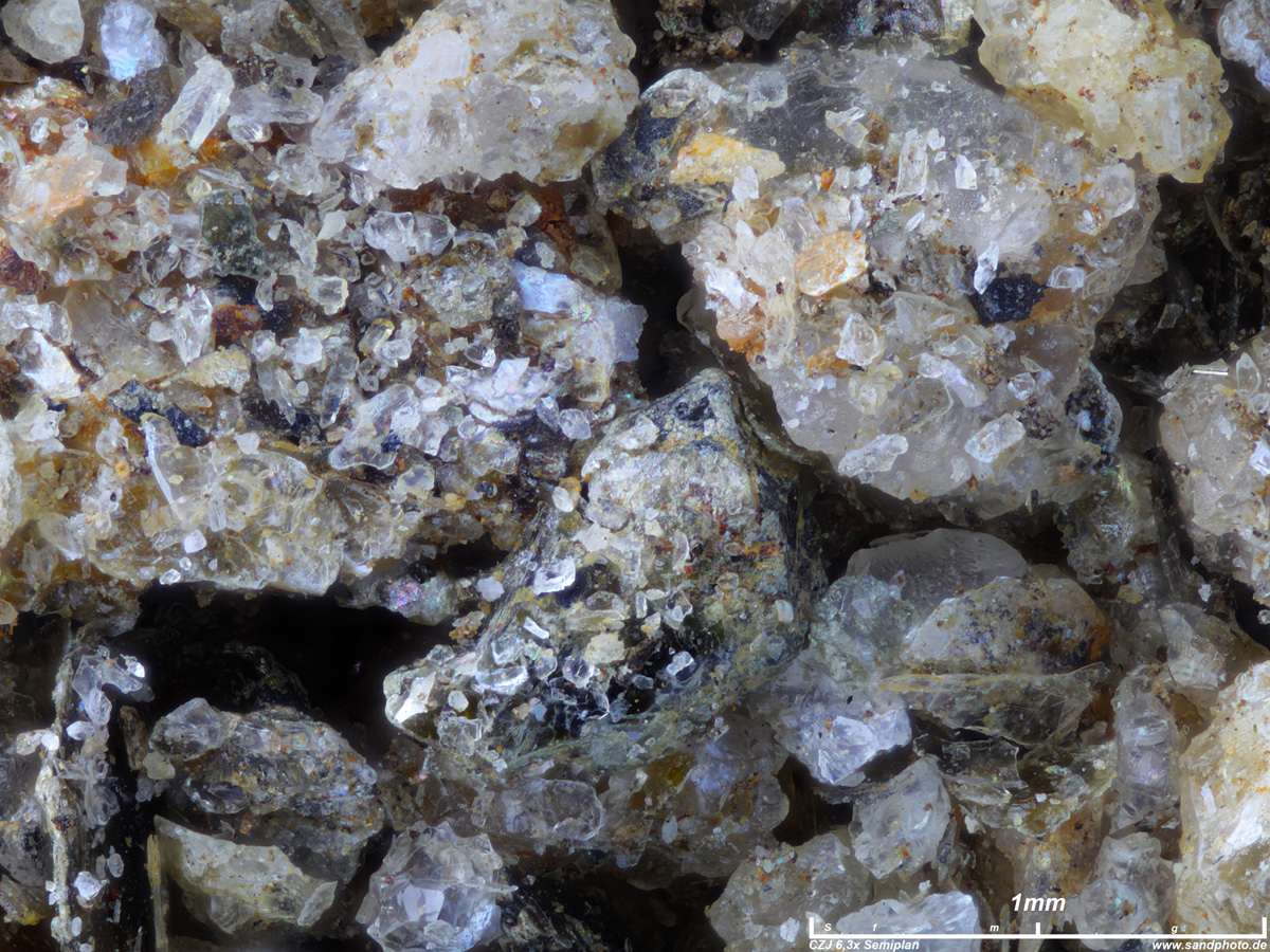 Glimmer und Quarzsand, nicht gerundet, von fein- bis grobkörnig