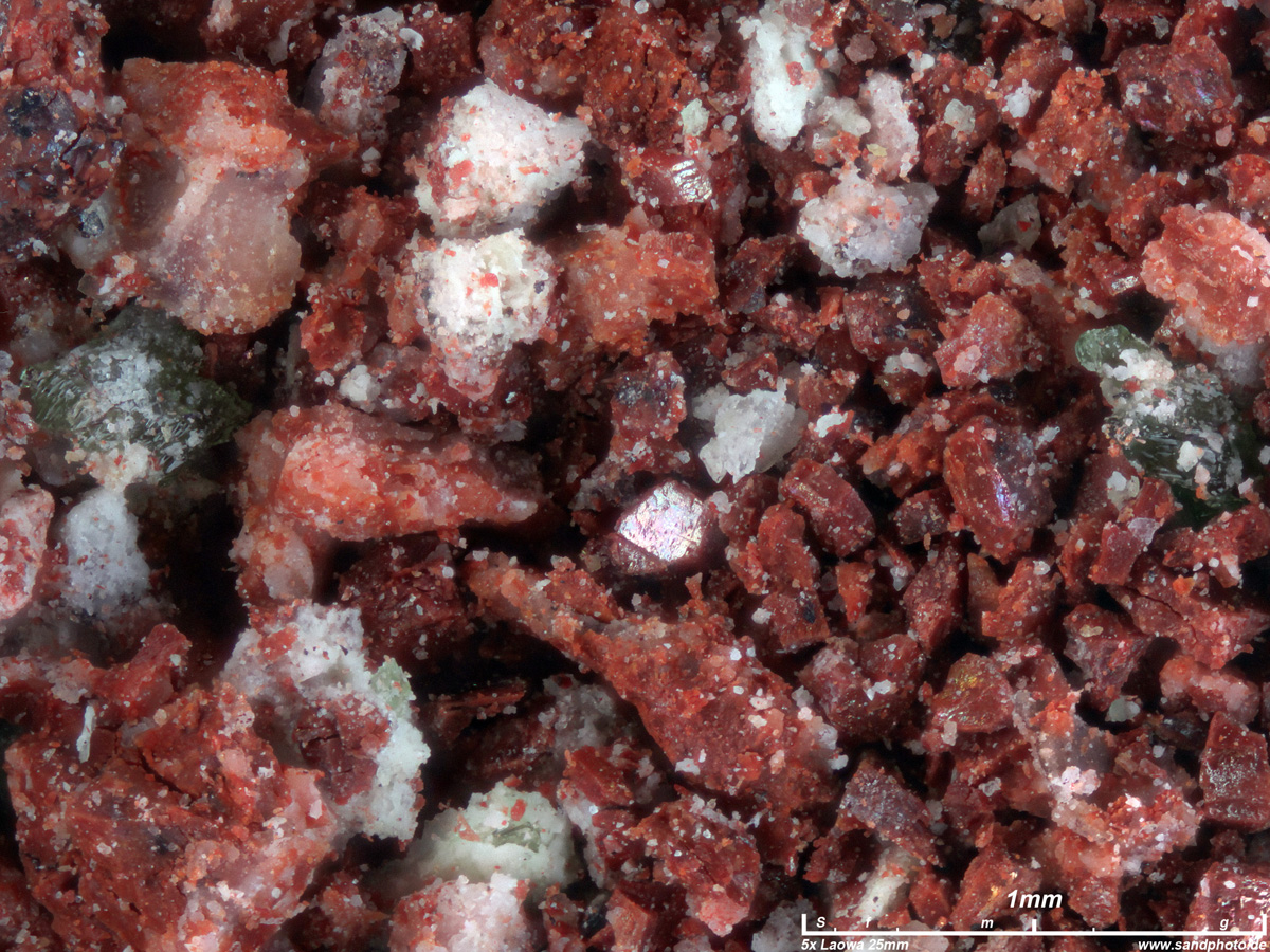 Abrieb einer Olivinbombe, feine bis grobe Körnung, teilw. magnetisch